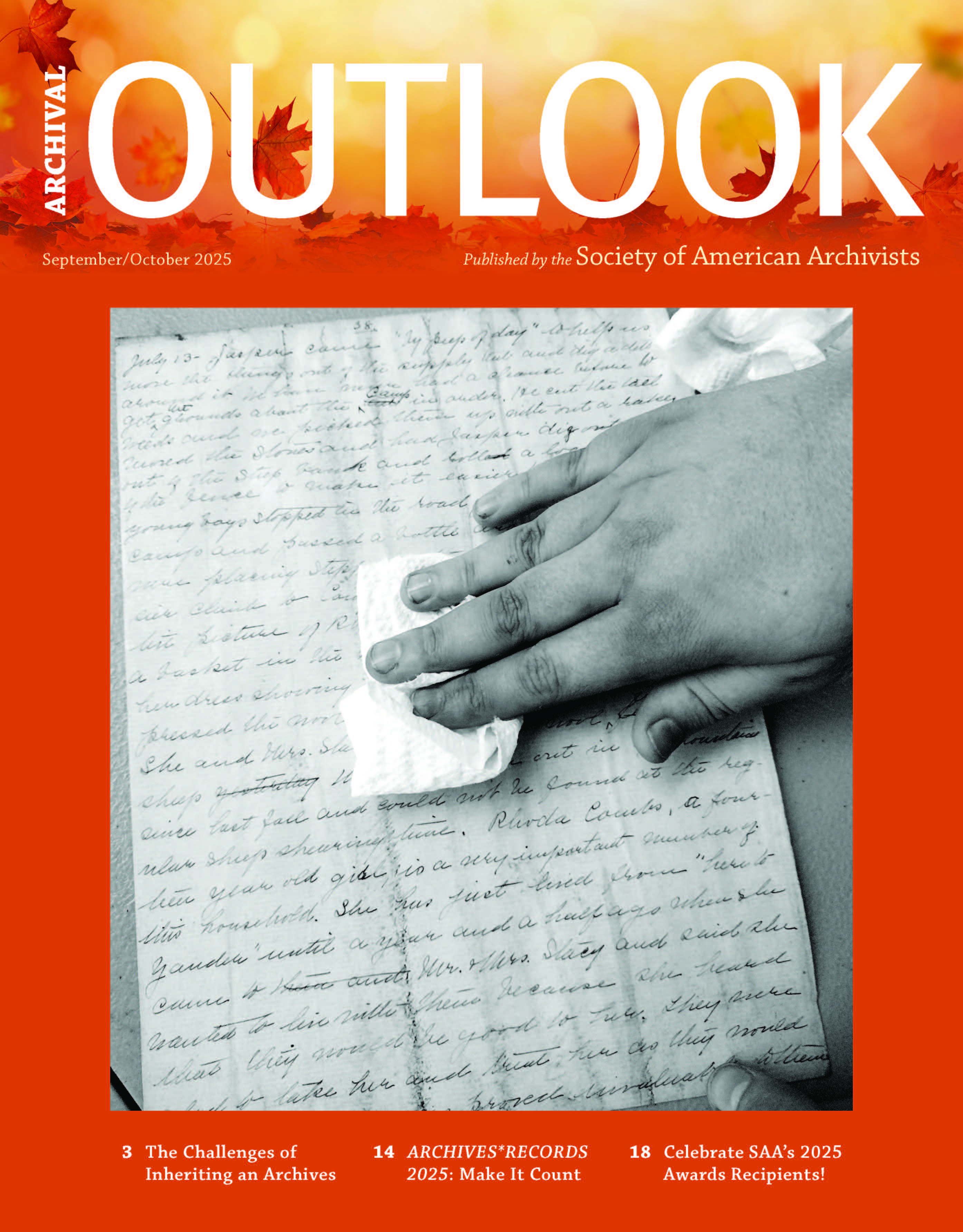 TO ACCESS ALL ISSUES OF ARCHIVAL OUTLOOK: Click here. Archival Outlook is available as a digital edition, allowing readers to share the issue or individual articles, access text-only versions of the articles or a PDF version of the issue, and more. (Learn more about the features of the digital edition.) Launched as the SAA Newsletter in 1974 and rebranded as Archival Outlook in 1996, the entire run is open access and contains a trove of information about the association's history and evolution.