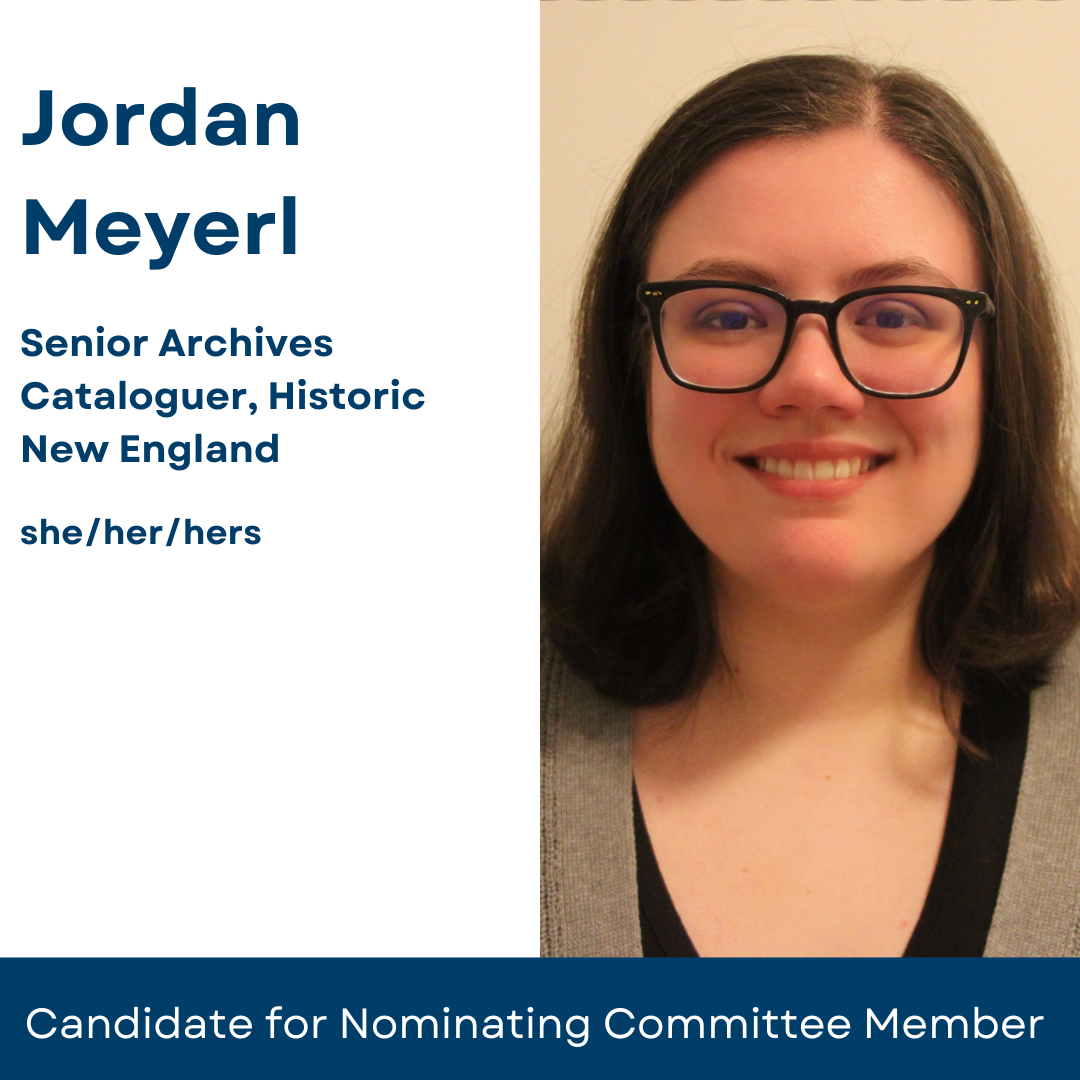 I am currently the Senior Archives Cataloguer at Historic New England, the oldest and largest regional heritage organization in the United States. In this position, I oversee the cataloging and processing of archival collections via appraisal, arrangement, and description; rehouse collections; assist in the digitization workflow; and participate in institutional outreach efforts. Prior to this role, I served in a number of part-time and contingent positions, including as the Project Archivist for a grant-funded collaboration between the Wyoming State Archives and the University of Wyoming aimed at establishing a state-wide Roving Archivist Program, as a Business Systems with Harvard Business School's Baker Library, and as a Clinical Document Management Specialist with Takeda Pharmaceuticals. Over the last seven years, the bulk of my professional service focused on promoting innovative research and continuing education within the archival field. I previously served as the Assistant Team Leader and Team Leader of bloggERS, the blog of SAA's Electronic Records Section. Since 2022, I've served on SAA's Committee on Research, Data, and Assessment, primarily serving as a coordinator for the annual Research Forum. I also previously served on the New England Archivists (NEA) Education Committee from 2018-2022 and served as an NEA Mentor. From 2019-2022, I also served on the Planning Committee and Public Relations Committee for the Massachusetts History Alliance. My other professional interests include reparative archival description, the development and promotion of community-based archives to center historically marginalized voices, and issues faced by archival professionals such as contingent employment. In my time as an archival professional, I have primarily held contingent positions, a fact which is not uncommon for many in the field. I am passionate about supporting contingent workers and identifying steps the field can take to mitigate the ongoing struggles faced by contingent workers.