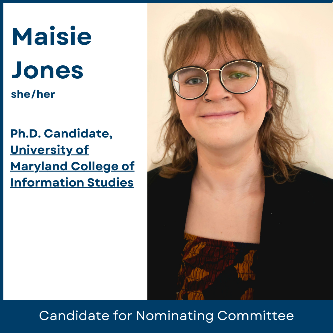 Maisie Jones is a Ph.D. candidate in Information at the University of Maryland. Her research is highly focused on digital accessibility, description, and information structures in archives and special collections. She holds an MLIS from the University of Alabama with a concentration in archives. Jones has published research pertaining to archival work in journals such as the Journal of Contemporary Archival Studies and featured research on archival materials in journals such as the Journal of Critical Digital Librarianship and the Journal of Open Humanities Data.